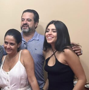 - Com os pais Tom Bastos e Maria Cristina