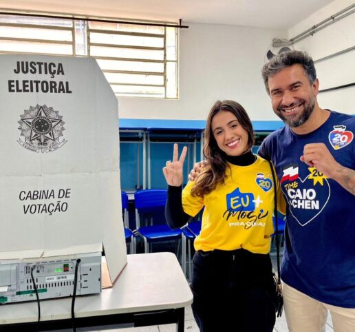 O candidato à reeleição para o comando da Prefeitura de Mogi das Cruzes, Caio Cunha (Podemos) votou na manhã deste domingo (6/10) ao lado da filha Júlia, na Escola Estadual Aprígio de Oliveira, localizada no Centro de Mogi das Cruzes. O tenente coronel Joel Chen, do mesmo partido, candidato a vice-prefeito, também votou no mesmo local e chegou junto com o prefeito.
