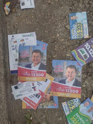 A equipe do vereador Iduigue Martins (PT), candidato à reeleição, flagrou, na manhã deste domingo (06/10), na porta da Escola Estadual Josephina Najar Hernandez, em Jundiapeba, muitos santinhos e panfletos falsos, com o número dele de urna errado. O vereador foi até o 3º DP registrar um boletim de ocorrência.
