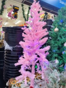 Já a costureira Angela Siqueira Oliveira, 36 anos, estava querendo comprar uma árvore diferente para este Natal. Em outra loja da área central, ela já achou o que procurava: uma árvore toda rosa. ´Quero fazer uma decoração rosa, com árvore em rosa, bolinhas e laços em diferentes tons de rosa. Vai ficar chique e tenho certeza que as minhas meninas, minhas filhas, vão amar porque elas amam a Barbie. Acho que vou fazer roupinhas de Mamãe-Noel para as Barbies delas e colocar também na árvore`, relatou.