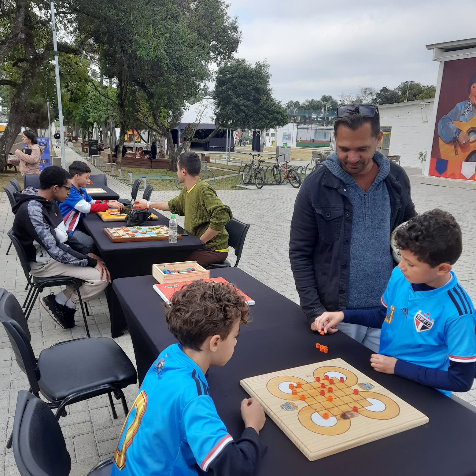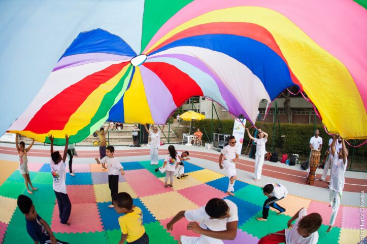 – Seis tendas espalhadas pelo espaço com oficinas de escultura de balão, slackline, capoeira para crianças, acrobacia e perna-de-pau