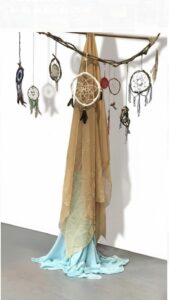 Um dos elementos centrais da exposição é o uso de caixas de feira reutilizadas como suporte artístico. Objetos cotidianos que antes foram árvores, depois trabalho e sustento, agora se transformam em arte, carregando histórias invisíveis e evocando raízes, ciclos e resistência. A mostra cria um elo simbólico entre mulheres, árvores e território, revelando o natural como gesto político e afetivo.