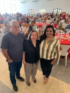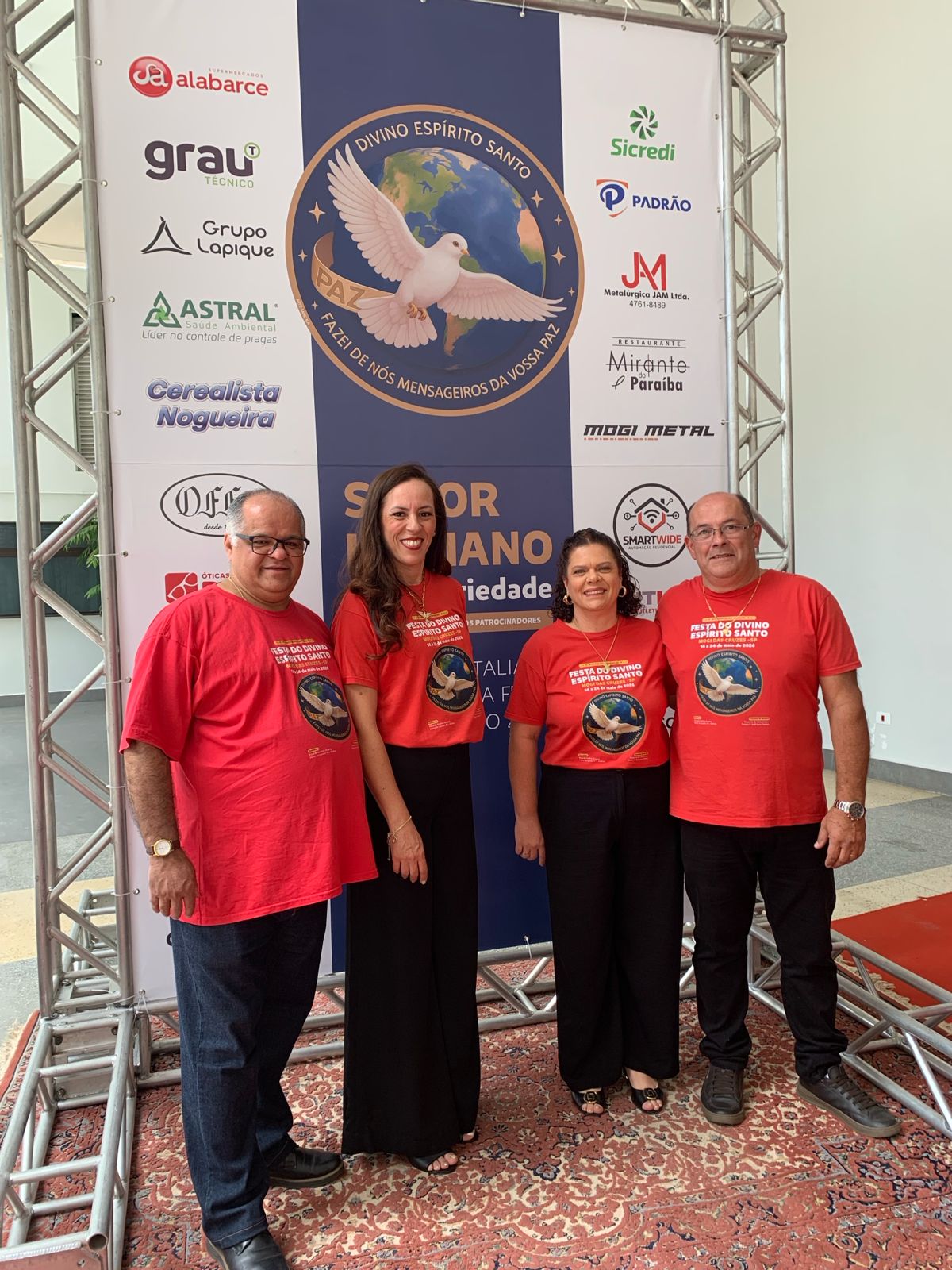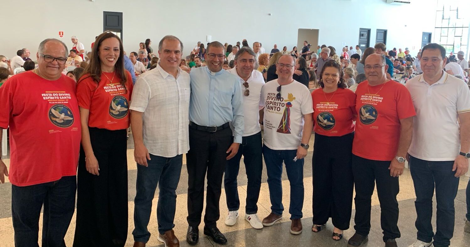 Os Festeiros Ricardo Medina Alvarez e Maria de Lourdes Pereira da Silva Medina e o Capitães de Mastro  Maurício de Lima Ramos e Tavane Prado Rodrigues Ramos da Festa do Divino Espírito Santo de Mogi das Cruzes anfitrionaram cerca de 600 convidados na tarde deste domingo (26), em um almoço repleto de fé, alegria e boa música, no Salão Social do Clube de Campo. O encontro, denominado de “Almoço Italiano – Sabor & Solidariedade”, marcou mais um passo rumo à edição de número 413, que ocorrerá de 14 de maio a 24 de maio de 2026, com o tema “Divino Espírito Santo, fazei de nós mensageiros da vossa Paz”.