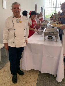 O almoço, com buffet assinado pelo renomado chef Valdir Stilihano, do Restaurante Mirante do Paraíba, em Guararema, e equipe, ofereceu o melhor da gastronomia italiana – massas, risotos e sabores típicos – em uma tarde gostosa, em que a confraternização e a devoção ao Espírito Santo reuniu amigos e famílias. A trilha sonora ficou por conta do grupo Família Andrade, que embalou o público com boa música e muita animação.
