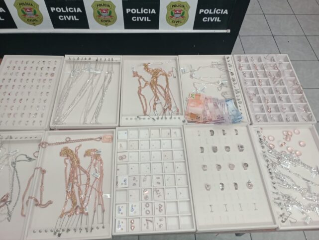 A ação resultou, além da prisão, na recuperação de 46 pares de brincos, 134 anéis, 36 pulseiras e 41 correntes. Todo o material foi recuperado pelos agentes e encaminhado à Polícia Civil. De acordo com as imagens do circuito interno da loja, outros dois indivíduos participaram da ação criminosa, mas conseguiram fugir antes da chegada da GCM. O detido já possui passagens anteriores por tráfico de drogas, roubo e furto.