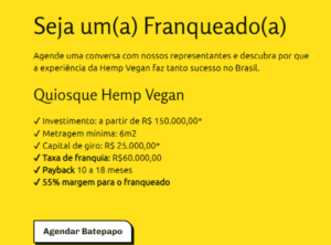 Para montar uma franquia da Hemp Vegam, o franqueado tem de investir a partir de R$ 150 mil e ainda pagar o aluguel do ponto comercial, no caso de Isabella, do quiosque no Mogi Shopping.