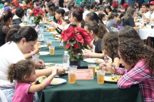 Logo após, as famílias receberam 355 cestas básicas e aves típicas desta época do ano, para que possam realizar em casa a própria ceia de Natal. Para completar, foi distribuído um panetone para cada pessoa que esteve na Arena.