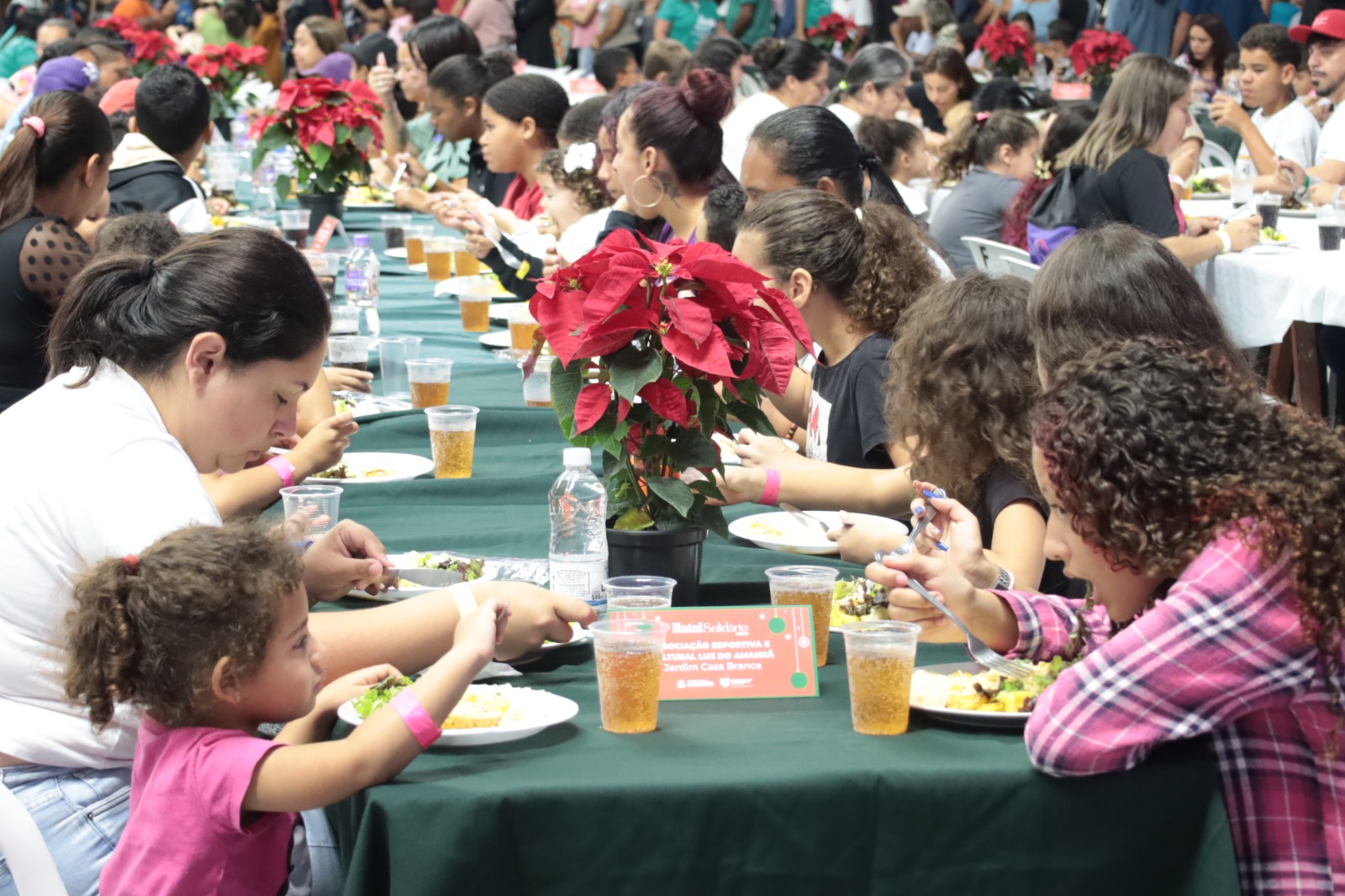 A programação começou às 11 horas, quando os 300 colaboradores que estavam na Arena começaram a receber os primeiros participantes. Na sequência, foi servido o almoço de Natal, com um cardápio especial preparado para a ocasião com arroz, farofa, lombo, batata suaté, salada, refrigerante, água e sorvete. O evento teve, ainda, a participação do prefeito Pedro Ishi, da presidente do Fundo Social, a primeira-dama Déborah Raffoul Ishi, do vice-prefeito Said Raful e da sua esposa, Eloisa Cirino,