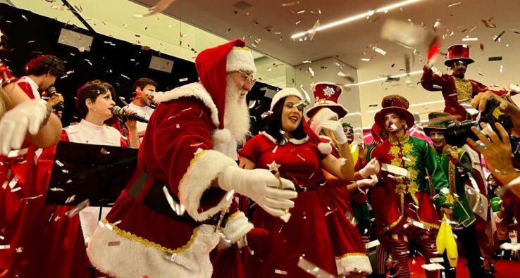 A inauguração da temporada mais mágica do ano, na noite de quinta-feira (14), teve apresentação de artistas circenses, participação de ginastas, e números musicais, que “esquentaram” o público com canções consagradas do repertório natalino. Ponto alto da festa, Papai Noel chegou ao Piso 3 ao coro dos visitantes, em sua maioria famílias com crianças. Depois de saudar a todos, o bom velhinho ocupou seu famoso trono vermelho em meio ao cenário especial e passou a atender aos pedidos de fotos e bate-papo com os pequenos.