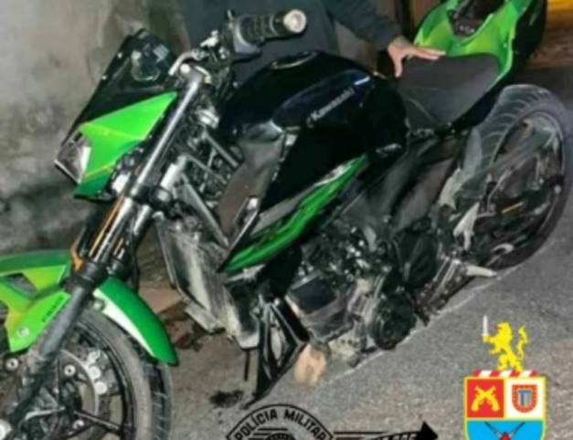 Com apoio de outras equipes, foi feita uma vistoria no imóvel, onde foi localizada uma motocicleta Kawasaki/Z400. Após consulta, foi constatado que o veículo era produto de roubo.