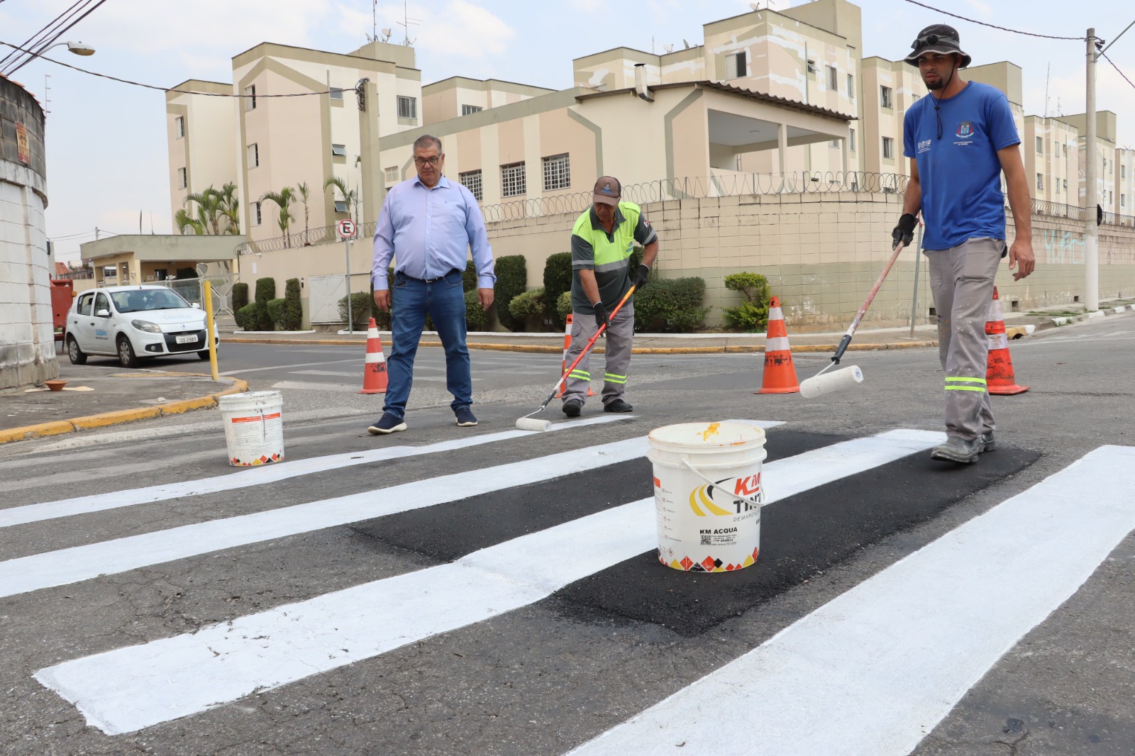Nesta oportunidade, o chefe do Poder Executivo municipal esteve acompanhado do secretário municipal de Transporte e Mobilidade Urbana, Claudinei Galo, do coordenador da pasta, Leandro Rabelo, e do chefe de Gabinete, Afrânio Evaristo da Silva. Eles verificaram a atuação das equipes da administração municipal no cruzamento com a rua Martha, onde também foi reforçada a pintura da sinalização horizontal e das guias.
