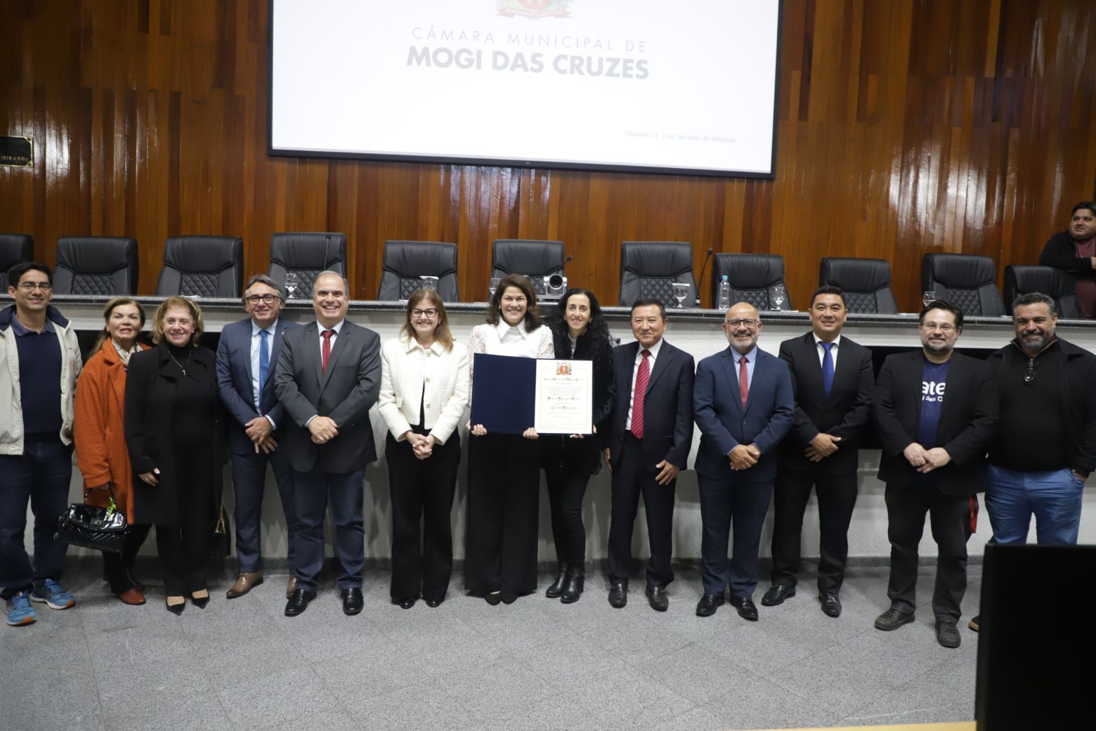 A solenidade, presidida por Francimário Vieira (Farofa), contou com a presença da prefeita Mara Bertaiolli, do vice-prefeito Marcello Cusatis (Téo), do ex-prefeito e ex-deputado Junji Abe, da presidente da Associação Comercial de Mogi das Cruzes (ACMC), Fádua Sleiman, do diretor da Fatec, Mogi Bruno Pancione, e de diversos nomes da vida pública local.